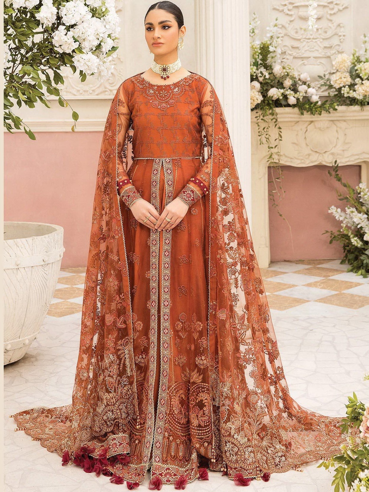 - Embroidered Net Sleeves 24 Inches