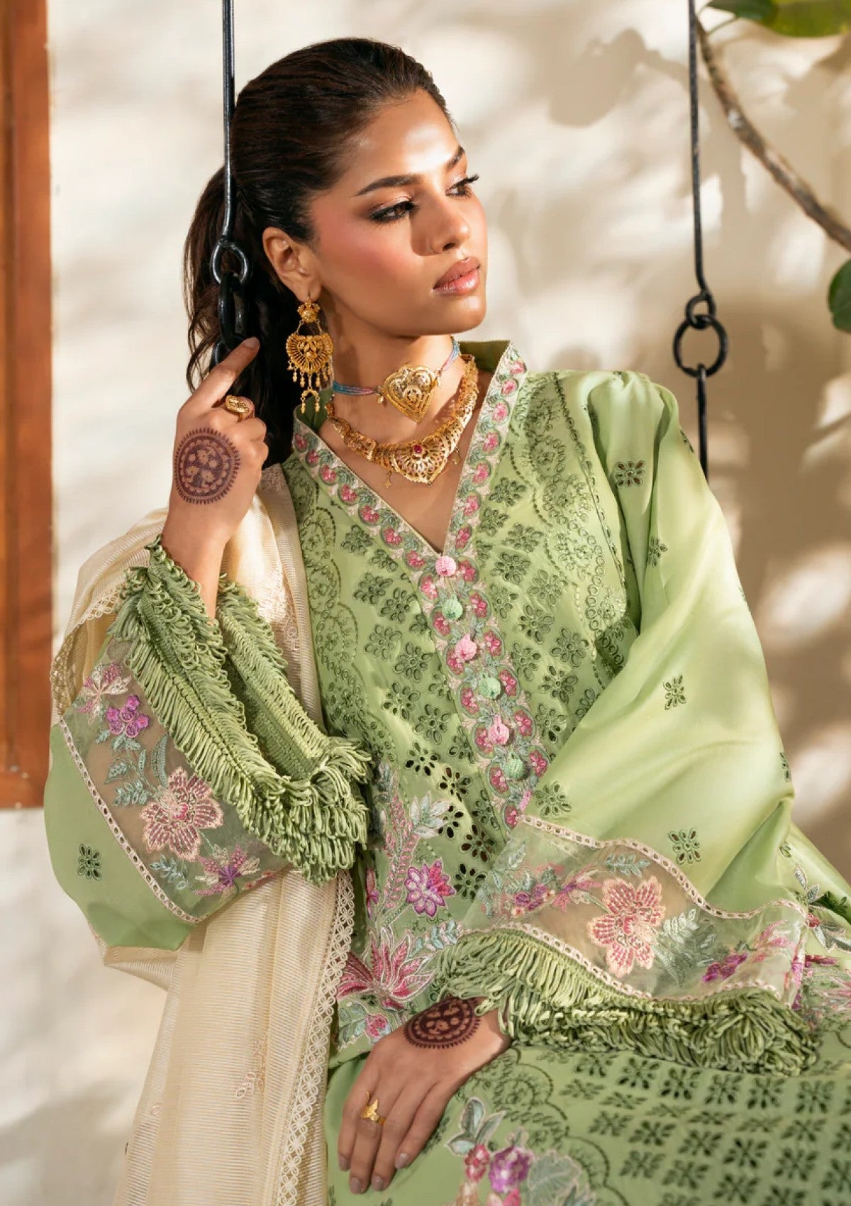 NAQSH CHIKANKARI Festive Edit'26 lawn collection D-00204 (GREEN PEACE) Unstitched