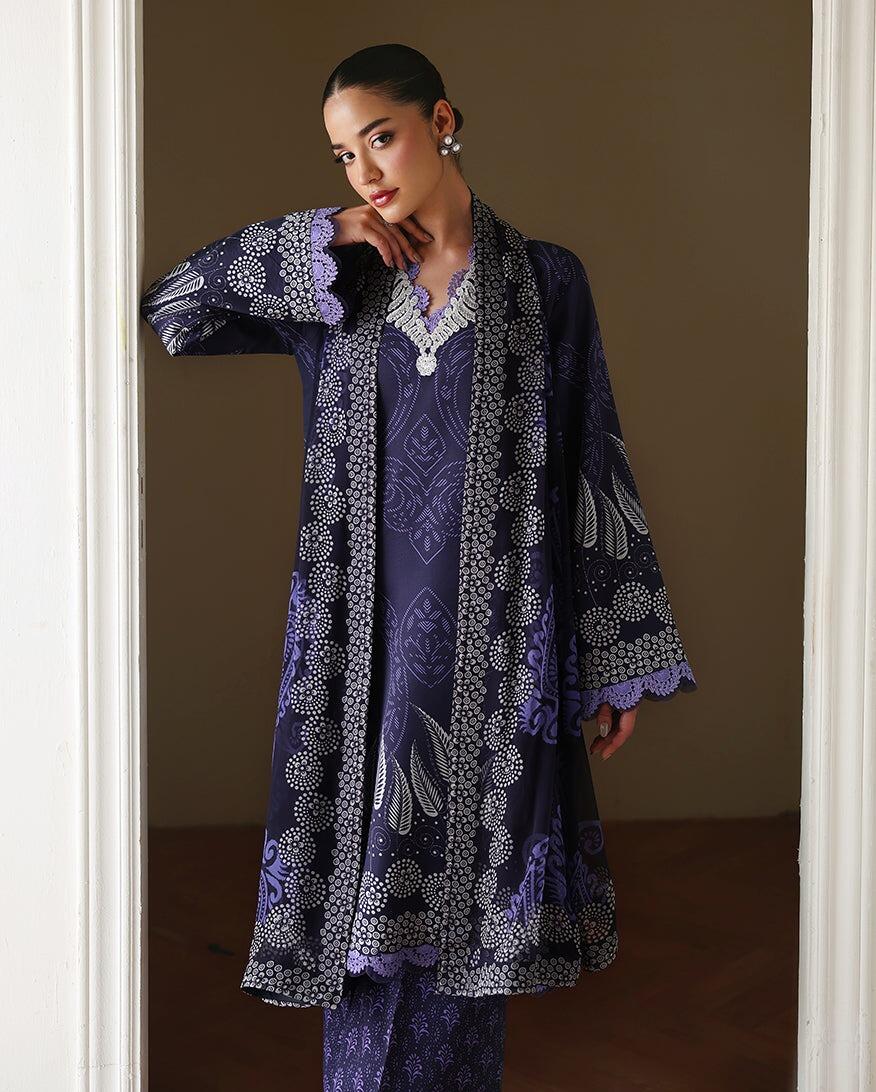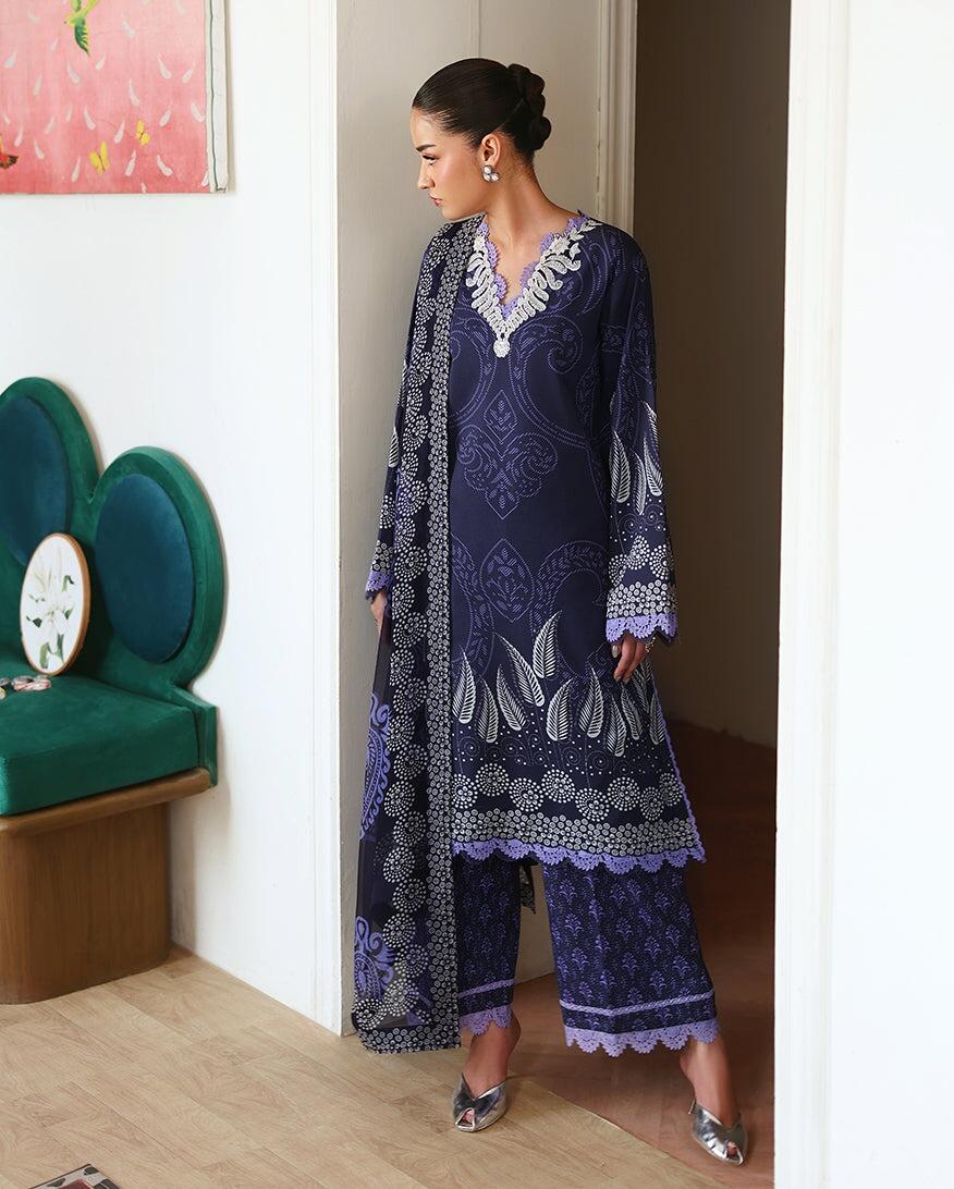 Eclat Garden By Roheenaz Orchid Garden Blue 3 Piece Lawn Suit