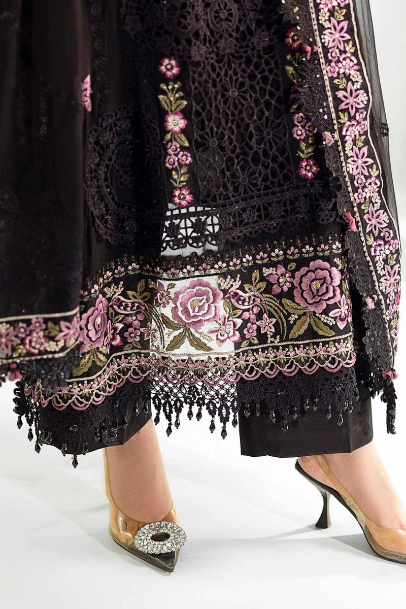 Embroidered Organza Neck Patch With 3D Flowers & Hand Embellishment